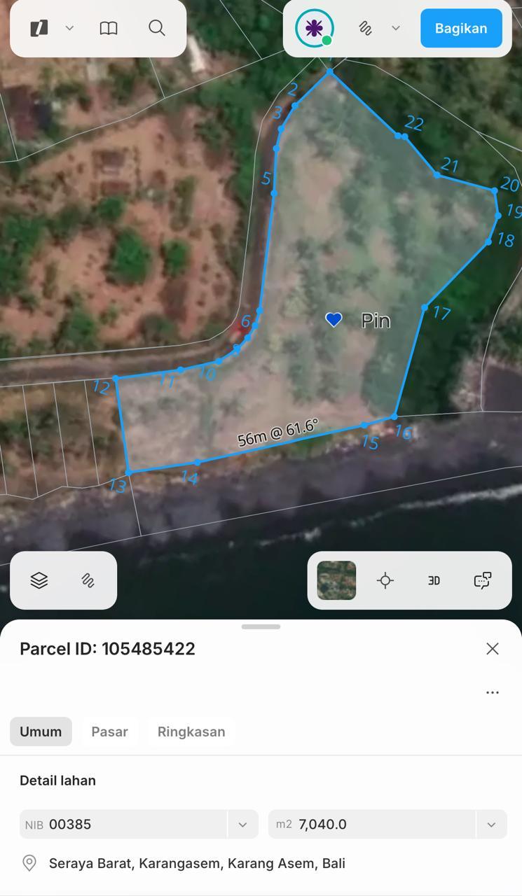 An exceptional opportunity to own prime beachfront land in East Bali, located in Seraya, Karangasem—an area known for its serenity, natural beauty, and rising tourism growth. The property sits close to the famous Taman Ujung Palace, surrounded by luxury private villas and commercial villa developments, making it a highly strategic choice for hospitality investment, resort development, or long-term land banking.